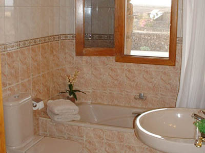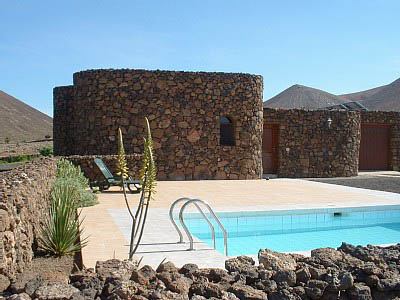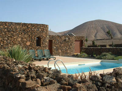 This unique and exclusive family villa, 'Lava Villa', was constructed in 1998 with volcanic rock. Built in the foothills, it is situated on one acre of private land with its own swimming pool. It's in an exclusive area of the island with spectacular views of the Natural Park, the sea, and Lanzarote. Lava Villa's master bedroom is en-suite with a bath/shower; and there's a separate shower. A safe is provided for your valuables. The second and third bedrooms (twin-rooms) have a separate entrance off the courtyard, and share a fully-fitted bathroom. All bed linens are supplied in Lava Villa. The kitchen is fully equipped. |
